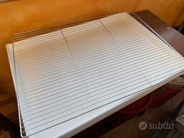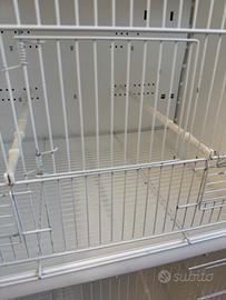 Vendo batteria composta da 4 gabbioni da 120 chiusi su 3 lati e divisibili con gli appositi divisori in due gabbie cova da 60cm. Compreso carrello nuovissimo e robusto con ruote che si bloccano. Completamente smontabile e facilmente trasportabile. Si monta facilmente. La batteria presenta delle scrostature della vernice, ma la zincatura è perfetta e NON ha mai presentato segni di ruggine. Dimensioni esterne gabbione: Lunghezza 122,5 cm Profondità 42 cm Altezza 42 cm Omaggio fondo e griglia di ricambio nuovi, mai utilizzati. Regalo inoltre mangiatoie, beverini e vari accessori come porta uovo e linguette porta sali. Contattami qui o al 3477142272 anche su WhatsApp - Elisa