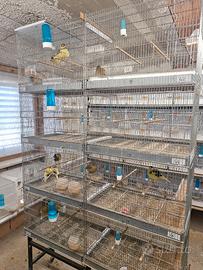 vendo batteria gabbie di 8 gabbie borgovit, completa di carrello originale, separi chiusi e in griglia, per informazioni telefonare al numero 339 2203625, ottima per canarini, cardellini, verzellini, lucherini, cardinalini, ciuffolotti, padda, diamantini, ondulati, verdoni, diamanti del gould ecc.