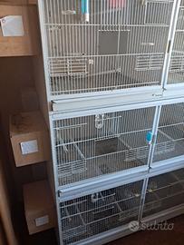 Vendo in blocco una batteria di gabbie per uccelli Terenziani composta da 4 piani (larghezza 118 cm) - otto gabbie di cova (58 cm x 50) e una batteria su due piani 4 gabbie di cova (altra marca) con nidi e mangiatoie come da foto allegate. Le batterie sono in ottimo stato di conservazione e sono disponibili per il ritiro diretto a Roma zona Cinecittà Est. Il sottoscritto si trova a 200 km da Roma per gravi motivi di famiglia e non ha intenzione di perdere tempo con persone non COMPLETAMENTE INTERESSATE. Non spedisco.