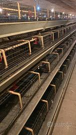 In vendita al miglior offerente due impianti completi di batterie di gabbie per pulcini (pulcinaie), installati, funzionanti e unificabili in un’unica struttura.