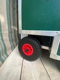 Baule da equitazione. 60X64X136h Esterno colore verde, interno colore nero. Sempre tenuto al coperto e lontano dalla luce diretta del sole. Senza difetti. - 2 porta sella smontabili - 2 porta testiere - 1 cassetto - 2 ruote incassate - 1 supporto esterno per attaccare la sella SOLO CONSEGNA A MANO ZONA ROVIGO PREZZO NON TRATTABILE