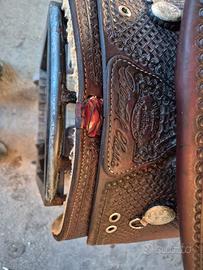 si propone in vendita bellissima sella western monta americana reining billy cook pro classic 16 pollici in ottime condizioni come da foto con staffe in legno. ideale anche per lavoro in piano, passeggiate, trekking, gimkana , lavoro con vitelli. per info 3357836837, visibile a gualtieri Reggio Emilia, prezzo comprensivo di spedizione direttamente a casa vostra.