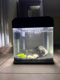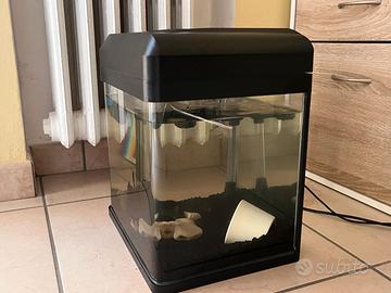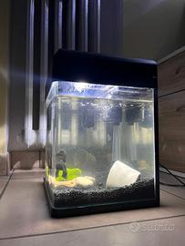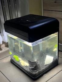 Acquario adatto a tutti i tipi di pesci con vasca in vetro curvato. Design moderno ed elegante.