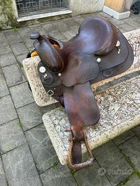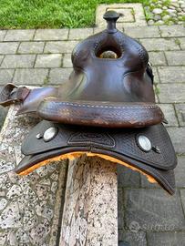 Vendo perché troppo piccola per me , buona sella da Reining.. sella datata ma restaurata di recente , presenta qualche segno di usura che influisce solo a livello estetico ! Chiedo 2000€ astenersi perdi tempo Solo ritiro a mano Valuto scambio con sella di pari valore con seggio da 16
