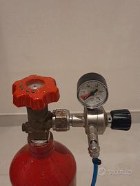 Bombola per CO2 da 2kg ricaricabile, completa di regolatore di pressione. Revisionata 2024