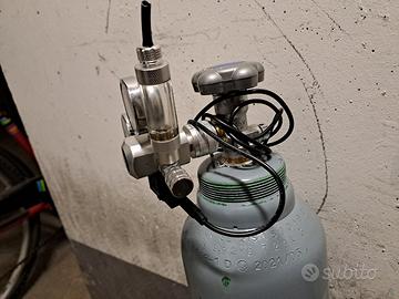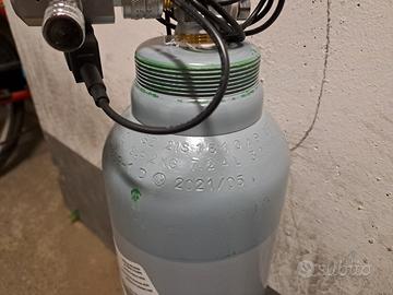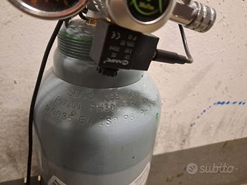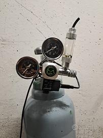 bombola di co2 ricaricabile da 10kg acquistata a maggio 2021 ( da revisionare 2031) con riduttore di pressione a 2 manometri ed elettrovalvola. La bombola è piena per metá circa ma non potendo dimostrarlo la vendo come se fosse vuota.