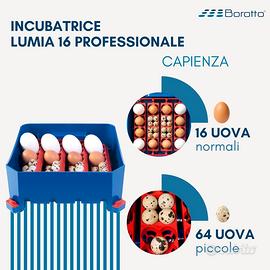 Borotto Lumia 16 Automatica - Incubatrice Professionale Brevettata, con Girauova Automatico - per 16 Uova Medio/Grandi o 64 Uova Piccole
