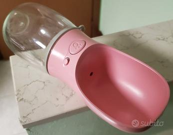 Praticissima borraccia da viaggio per cani, ideale per passeggiate, trekking o viaggi in auto. Colore rosa, design compatto e funzionale. - Capacità: 260 ml - Facile da usare: Si preme il pulsante per far scendere l'acqua nella ciotolina e si può far rientrare quella non consumata per evitare sprechi. - Sicurezza: Dotata di tasto di blocco per evitare perdite d'acqua nello zaino o in borsa. Extra: Include laccetto da polso per un trasposto comodo. Stato: Pulita e igienizzata, usata pochissimo. Disponibile per consegna a mano o spedizione veloce con Tuttosubito.