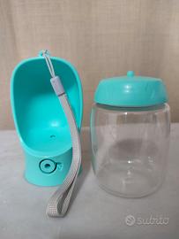 Borraccia per cane da passeggio, con pulsante di erogazione acqua. Lunghezza 22 x larghezza 8 cm.