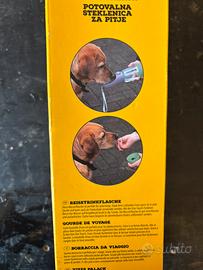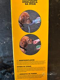 Borraccia con ciotola/portasnack inclusa Comodissima con tasto per far uscire ed eventualmente far rientrare l’acqua non bevuta …ottima cosa per quando si fanno lunghe passeggiate dove non c’è acqua Quella aperta in foto è la nostra Le borracce in vendita sono nuove…3 pz disponibili