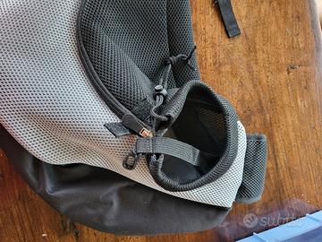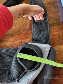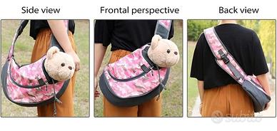 Borsa a Tracolla per Animali Domestici, materiale traspirante e confortevole. Ideale per il trasporto per cani, gatti, altri animali domestici. Tracolla regolabile per viaggiare o camminare. Coulisse regolabile, veltro di protezione del cursore, moschettone interno da fissare al collare/pettorina, taschina porrà oggetti. Tenuta fino a 7,5 kg. Misure in foto. Prodotto nuovo, mai usato, privo di difetti. Spedizione a cura dell'acquirente o consegna a mano. NO PERDITEMPO E INDECISI!