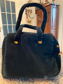 Borsa da passeggio per cani di piccola taglia in velluto nero con applicazioni