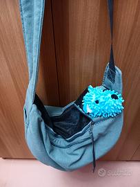 Vendo pratica e comodissima borsa trasportino a tracolla, in morbido tessuto color azzurro polvere. Il design a mezzaluna permette di tenere il proprio animale vicino al corpo, lasciando le mani libere. • Sicurezza: Include un gancio interno di sicurezza da fissare alla pettorina o al collare. • Comfort: Tracolla molto ampia per non affaticare la spalla durante il trasporto. • Dettagli: Chiusura con zip e rete traspirante che potete scegliere quando: - tenere completamente chiusa in sicurezza e per la tranquillità del vostro pelosetto - semi aperta per condividere con voi l'uscita - totalmente aperta con aggancio di bottone automatico per apertura completa Pratica tasca esterna con cerniera più due tasche laterali. Tutto visibile nelle foto pubblicate in annuncio (tutte allegate) Perfetta per passeggiate in città o viaggi.