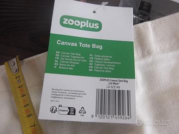 Borsa Canvas Tote Bag della Zooplus nuova mai usata e Guanto Double Sided Wellness Glove della Zooplus nuovo mai usato vendo in blocco.