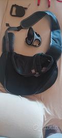 Vendo 2 borse da passeggio per cani e gatti di piccola taglia, dotate di gancio di sicurezza interno, due pettorine e un guinzaglio; tutto come nuovo mai usato.