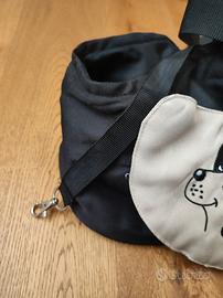 Vendo borsetta da passeggio porta animali, con gancetto per eventuale guinzaglio. Le misure indicative sono le seguenti: il fondo nei punti massimi misura 34*19 cm, mentre l'altezza è di circa 25 cm. Usata meno di un mese (poi il cane è diventato troppo grande per starci), quindi le condizioni sono ottime, come si può vedere anche dalle foto.