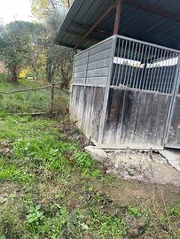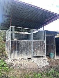 2 box singoli per cavalli, misura 3x3 un box ha il tetto ha due falde, l”altro a una. I tetti sono in pannelli sandwich. I box sono robusti e in buone condizioni. Si vendono insieme a 2400 euro. Smontaggio e trasporto a carico dell’acquirente.