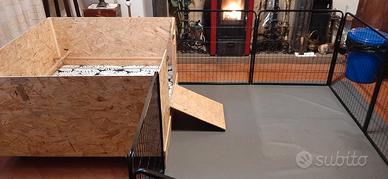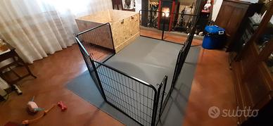 BOX PARTO/Nursery per cani taglia medio grande autocostruita in modo perfetto confortevole e funzionale. Completa di recinto in metallo da agganciare alla cuccia e pavimento in pvc. Corredata di cuscino alto in gommapiuma, sfoderabile. Perfetta, usata solo 1 volta.