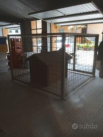 Box misure cm 200 x 200 x 140 con porta di cm. 74 Fatto da un artigiano con rete elettrosaldata e telaio in ferro, per il mio cane Airedale terrier - Fido/Assalonne - che era testardo e incontenibile. Preciso che il box veniva usato solo nei momenti critici, Fido è sempre vissuto in casa con me, libero. Necessita di riverniciatura. Il prezzo è trattabile. Il box è stato smontato ed è formato da quattro pezzi ed è pesante. Posso dare ulteriori informazioni a richiesta.