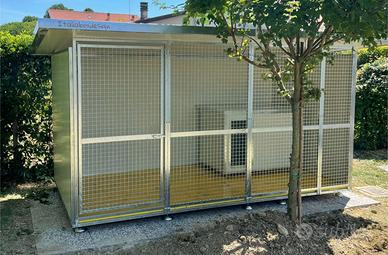 Box realizzato con pannelli coibentati da 30 mm di spessore le pareti e tetto in coibentato da 40 più 40 mm reti in ferro zincato a caldo foro 40 X 40 filo 4 mm per l’anti incastro delle zampe, se poi si vuole anche il basamento rialzato da terra con piedini regolabili per la messa in bolla con pavimento in legno o pvc lavabile si può interscambiare.
