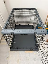 Il Box Pieghevole per Cani Superior Nero è la scelta perfetta per garantire al tuo cucciolo un ambiente confortevole, sicuro e protetto sin dai primi momenti nella sua nuova casa. Questo pratico box, disponibile in cinque misure, è pensato per soddisfare le diverse esigenze dei cani di tutte le taglie, adattandosi alla loro crescita grazie a un pannello divisorio regolabile. Caratteristiche: • Versatilità d'Uso: Ideale per addestrare il cucciolo, creare uno spazio sicuro all'interno dell'ambiente domestico o trasportare Fido nel bagagliaio dell'auto. • Materiali Robusti: Realizzato in rete di metallo con cornici e base in plastica, assicura robustezza e solidità. Le ampie griglie di ventilazione offrono un'ottima visibilità del cane. • Aperture Multiple: Il modello piccolo Superior 60 presenta 2 aperture (laterale e superiore), mentre i modelli più grandi ne hanno 3 (laterale, superiore e frontale). Il tetto è completamente apribile e removibile per facilitare l'accesso e le coccole. • Sicurezza: Le porte sono dotate di doppia serratura di sicurezza, assicurando un accesso agevole e sicuro. • Base in Plastica: Contiene lo sporco e garantisce un ambiente asciutto e stabile grazie al sistema di drenaggio e alla superficie antisdrucciolo. I gommini antiscivolo mantengono il box stabile sul pavimento. • Facilità di Montaggio: Non richiede utensili per il montaggio e il sistema pieghevole brevettato consente una facile portabilità. • Roller e Ruote: Per brevi spostamenti, il box è dotato di 4 roller. Per spostamenti più lunghi, è possibile acquistare separatamente il kit di 4 ruote L440. • Copertura Optional: È disponibile una copertura in tessuto impermeabile e antigraffio per garantire privacy e tranquillità durante il trasporto, dotata di elastici e finestre avvolgibili. 77x107 h73,5