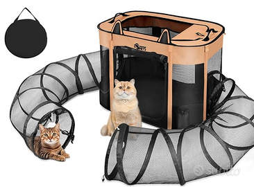 Box in tessuto con tunnel per tenere il gatto o farlo giocare in uno spazio in sicurezza. trovate tutte le descrizioni e le foto anche su amazon. Da esterni o interni, richiudibile, come nuovo, vendo per inutilizzo Misura 84 x 61 x 29 cm