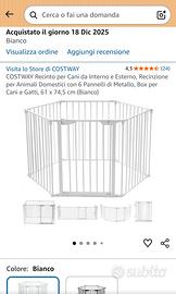 Vendo per inutilizzo ( ancora imballato ) recinto per bambini o animali modulabile. La confezione non è stata mai aperta, in quanto le foto messe rispecchiano il prodotto in essere. Specifiche: Altezza 74 cm. Lunghezza: 3,8 m. Consegna a mano, oppure spedizione a carico del destinatario con aggiunta di 10€. In più regalo casetta usata pochissimo, solo da ripulire