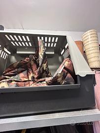 Vendo grande box per trasporto cani misure 100x60x65h, compreso due cuscinoni imbottiti per l’interno.
