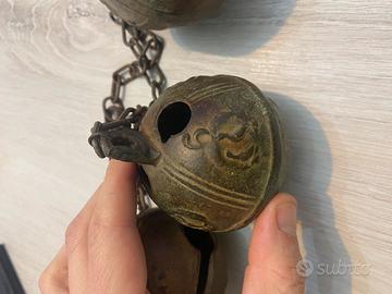 Bubboli o sonagli , campane in bronzo antiche numero 5/6/ e 8(?) le num. 5 e 6 sono marchiate V.F , la grande non riporta sigle. Bei pezzi da collezione
