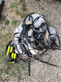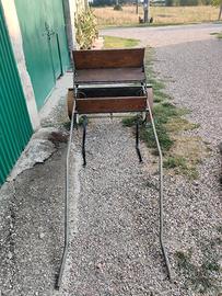 Vendo per inutilizzo calesse in ferro e legno, misura da doppio pony e piccolo cavallo (era usato con un sella francese di 155cm e prima ancora un doppio pony). Sedile con molle ammortizzanti, timoncino, catarifrangenti.