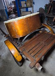 Ruote gommate con raggi in ferro, parafanghi in legno