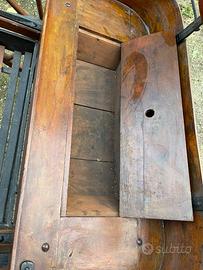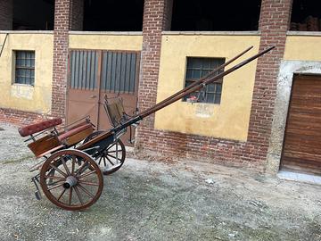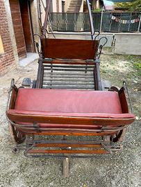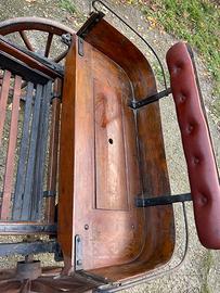 Vendo calesse realizzato nel 1960, con ancora la targa dell'epoca. Struttura in legno e ferro, con seduta imbottita in pelle rossa, pedane laterali e vano nascosto sotto la seduta. Ottimo stato generale. 💰 Prezzo: 740 € trattabile .