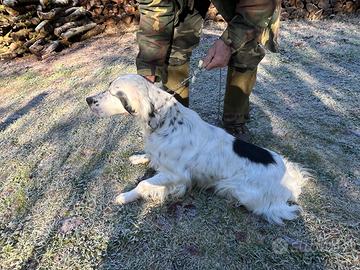 Setter inglese maschio di anni quattro e mezzo, colore bianco/nero ( blue belton ) , con pedigree R.O.I., vaccinato e microcippato. Vendesi per cessata attività venatoria. Prezzo trattabile. Chiamare Cesare 338-7934141 ore pasti.