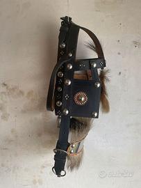Vendo capezza per cavallo fatta a mano, cuoio con inserti in pelo, acciaio con campana. Un po' ossidata la targhetta centrale. Pezzo raro. Disponibile per la spedizione.