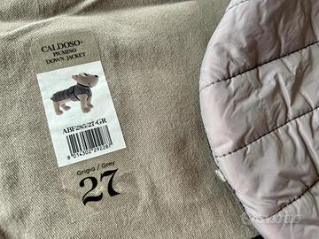 Cappottino cane taglia piccola di colore grigio. Praticamente nuovo. Si dismette per crescita cagnolino. Molto morbido e tiene caldo. Impermeabile. Con relativa confezione/sacca d'acquisto e relativi gancetti per tenere fermo meglio il cappottino (nuovi, mai usati).