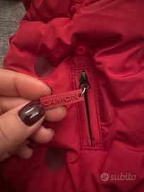 Cappottino piumino rosso marca Camon tg 27 per cani piccola taglia o cuccioli, con chiusura a velcro, elastici per fissarlo alle zampine posteriori, cerniera per far passare aggancio della pancerina, cappouccio removibile, confezione originale