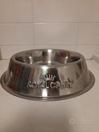 Due ciotole grandi, una in acciaio inox diametro 30 cm della Royal Canin, altra in plastica robusta da 34 cm. Condizioni ottime.