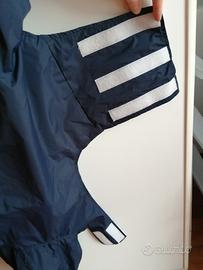 Cappottino impermeabile per cani di taglia medio-grande, colore blu scuro. NON è imbottito. È una taglia 5XL. Chiusure con feltro, elastici per le zampe posteriori e cappuccio. Nessun difetto.