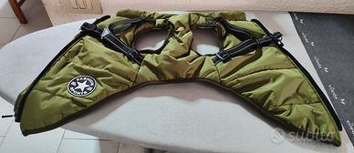 Vendo per acquisto taglia errata,cappottino invernale per cane con pettorina integrata,colore verde,taglia XL,adatta per cane di razza Pinscher,Barboncino nano,Yorkshire e Maltese