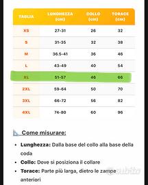 Taglie disponibili: XL colore blu come da foto. Verificare le misure del vs cane ed accertarsi che corrispondano con quelle in tabella.