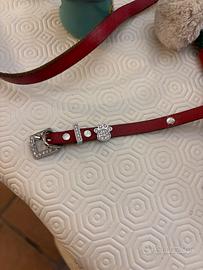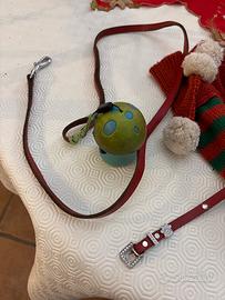 Vendo cappottino per cane tema natalizio taglia piccola completo di collarino con brillantini e guinzaglio non allungabile in pelle colore rosso