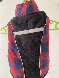 Cappottino imbottito decoro scozzese blu e rosso interno pelliccetta nera con strappi