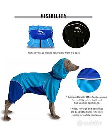 Copertura completa del corpo: Copre la maggior parte del corpo del cane, inclusi pancia e zampe, proteggendo da sporco, detriti, pioggia e freddo.Tessuto funzionale elasticizzato in 4 direzioni che consente ai cani di muoversi comodamente con leggerezza, anche nelle giornate piovose.