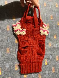 Cappotto per cane chihuahua in lana. Lunghezza 23 cm, larghezza 12 cm. Con farfalla e pizzo, colore rosso.