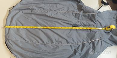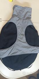 Cappotto Imbottito Invernale x Cane, Tg XXL, Colore Esterno Grigio con Strisce Riflettente, Interessante in Pile Blu, Collo Avvolgente, Lunghezza 65Cm / Larghezza 60Cm, Usato ma in Ottime Condizioni.