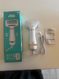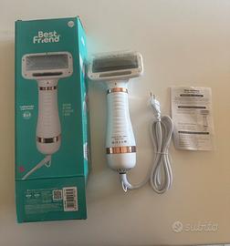 Cardatore con phon per asciugare e spazzolare il pelo dei tuoi animali Con un solo movimento asciuga, pettina e scioglie i nodi senza graffiare la cute. Cardatore con denti angolati morbidi e punte rivestite per pulire il manto in profondita garantendo un pelo liscio e senza nodi con estrema delicatezza; il cardatore è realizzato in accidio inossidabile per garantire una lunga durata. Silenzioso: idone anche agli animali più timorosi. Nuovo mai usato .