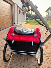vendo carrello per il trasporto cani per bici causa inutilizzo. adatto anche per cani di taglia grande dimensioni base 80*65 altezza totale (comprese le ruote) 90 cm, diametro ruote 50cm.