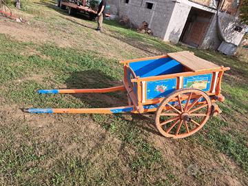 Vendo carretto d’epoca in legno del 1916, completo di targhetta originale. Dipinto a mano, ben conservato e strutturalmente solido. Ruote in legno, colori vivi e ottimo impatto estetico. Perfetto per arredamento rustico, agriturismi, giardini, scenografie o collezionisti.