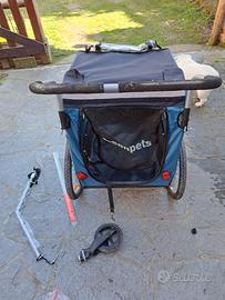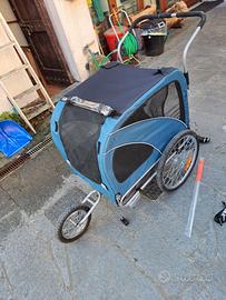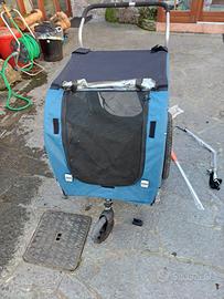 Carrozzina e carrello bici per cani taglia max 40 kg, tenuta bene con dotazione di doppia ruota anteriore intercambiabile.