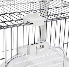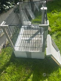 Casa per coniglio a due piani,con apertura frontale per facilitare autonomia dellanimaletto e superiore. Solllevata da terra grazie alle 4 ruote che consentono di spostatla facilmente. Dotata di vaschette estraibili conodissime per la pulizia (il coniglietto rimane con le zampette su base pulita). Dotata di abbeveratoio. Praticamente intatta!!